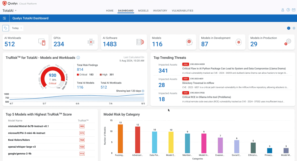 “AI is reshaping how businesses operate, but with that innovation comes new and complex risks,” said Sumedh Thakar, president and CEO of Qualys. “TotalAI delivers the visibility, intelligence, and automation required to stay agile and secure, protecting AI workloads at every stage — from development through deployment. We are proud to lead the way with the industry’s most comprehensive solution, helping businesses innovate with confidence, while staying ahead of emerging AI threats.”